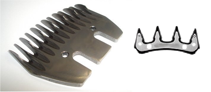 - Das Obermesser hat vier Zähne, gleitet leicht durch die Wolle und vermeidet durch seine Form ein Aufschieben der Wolle.